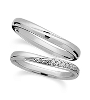 ストレートタイプのリングに レディースはウェーブのラインでダイヤモンドを留めたデザイン。 優しく華やかさをプラスしてくれる、 モダンなデザインです。 |